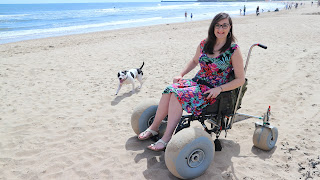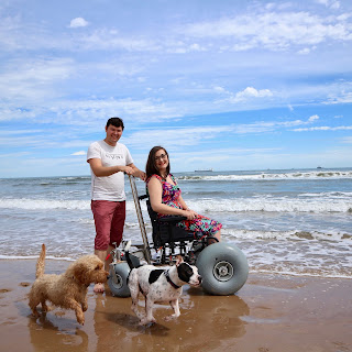 I had the pleasure of visiting Newcastle and the surrounding areas on holiday this year with my partner, Richard, and my dog, Milo. We had beautiful sunshine throughout our time which really made our time wonderful when we visited all the beautiful places in the North East! Tynemouth was no exception with the ruins of Tynemouth Priory and the quaint, bustling town centre. The beach itself was absolutely beautiful and had a really safe family feel alongside lots of couples walking their dogs along the stunning coastline. As any wheelchair user or person with limited mobility knows, accessing a beach is one of the trickiest things you can do! Your wheels sink in the sand so you barely make it a few metres off of the beach access ramp unless you are light enough to be lifted by companions/ carers (I would break Richard’s back if we tried that!). Therefore, Richard and I were absolutely delighted to find the charity called Beach Access North East (http://www.beachaccessnortheast.org) who give free access to a range of beach wheelchairs and beach mobility equipment in the North East area. This meant I could wheel onto the beach with Richard and Milo and even paddle my feet in the sea!