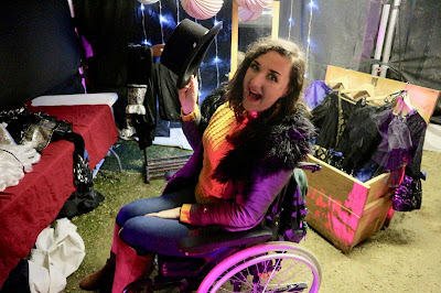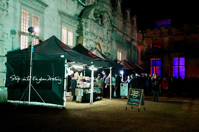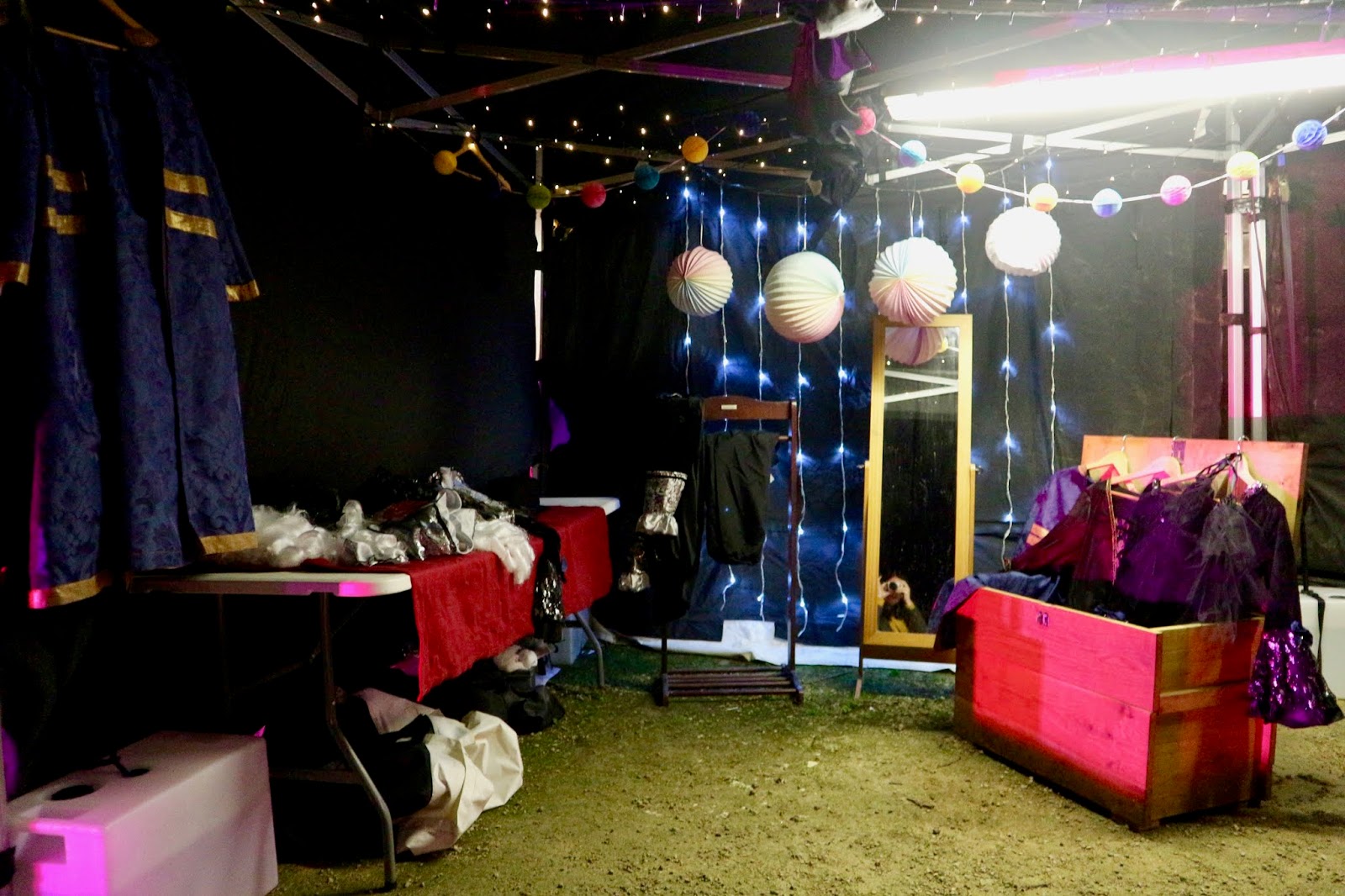 There was a block of temporary toilets that you wheeled past to get into this event but there wasn’t a dibbled stall that I saw. I did ask a couple of staff members who seemed unsure as to where the disabled toilets were but we managed to find them in the end. Upon entering the main courtyard, your senses are hit with a cacophony of different exciting things; the walls are lit in vibrant colours, you hear children playing the vintage carnival games, can listen to music played by a stilt walker on an accordion and see all the fun stalls ahead for you to explore. A real treat! There was a fancy dress booth with various props that represented different characters within The Greatest Showman and there were plenty of children (and adults like me) that were excited to try different props on! Alongside this, there were a set of three vintage carnival games so you could try your best to knock coconuts off of racks and throw beanbags into holes. A thoroughly enjoyable experience for adults and children alike! The English Heritage were selling hot mulled wine, hot chocolate, other hot drinks and food such as toasted marshmallow skewers. This was some good relief to the frosty Autumnal evening weather.