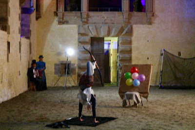 The next performance was Colette the contortionist. Her act was in the historic riding stables building and the commitment to access here was amazing! English Heritage had set a tiered seating arrangement up but there was a ramp to access this and a special, level-access area reserved for wheelchair users. Richard, my partner, was given a fold-out chair to sit on during the performance so I wasn’t sat alone. Colette was fantastic! She weaved her body into unimaginable positions to the sound of the accordion’s music. The real show-stopping trick was when she fired an arrow from a headstand position, with her feet! Absolutely astounding and the crowd’s cheer just showed how impressed every single person was with her show.