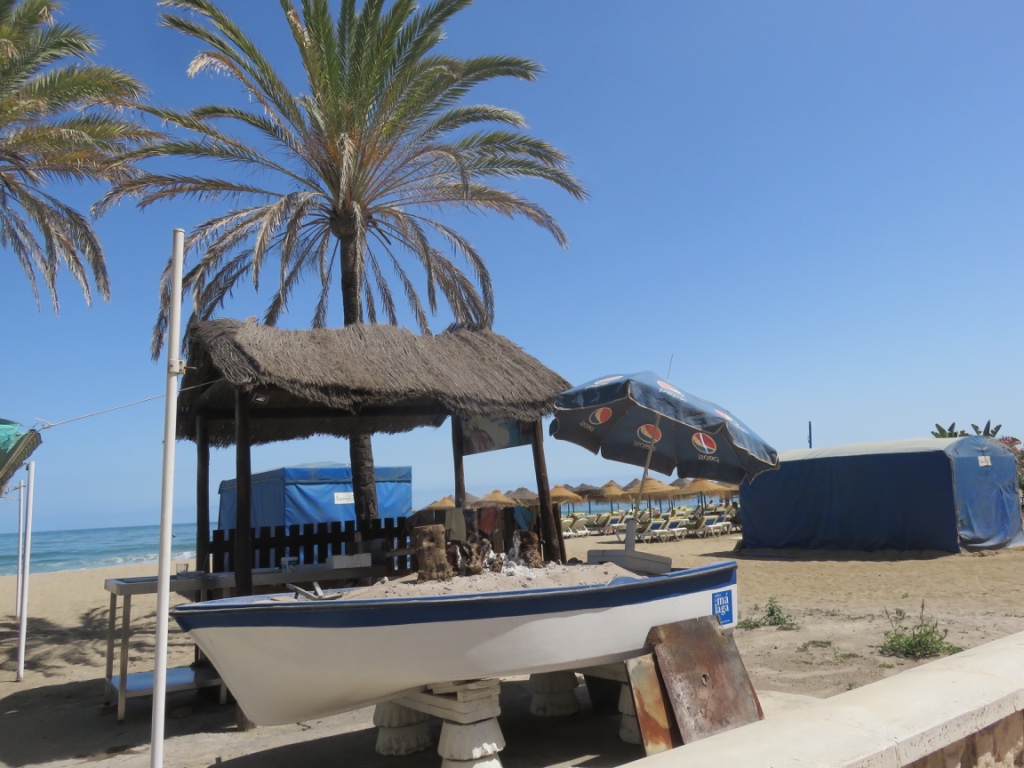 Many restaurants, cafes and bars line the beach. Spanish beach restaurants are called Chiringuitos and are to be found frequently across all the beaches in the Costa del Sol. These bars sell alcoholic and non-alcoholic drinks, ice-cream and meals. Many have seafood speciality dishes and often sell tapas style small dishes that you can combine as a group. Some include use of stylish beach beds or sunbeds for the day but this can add an extra charge. Be careful when ordering from a menu in English as these prices can be higher than the Spanish menu so do check both before ordering. As with many European destinations do make sure you check whether it costs more to use an outside table rather than sitting inside the restaurant. The open air barbecue style is often popular in these Chiringuito restaurants and these can be presented in quirky ways such as the barbecue boat pictures which supplied smoked fish amongst other dishes to “eat in” or take away. ![]()