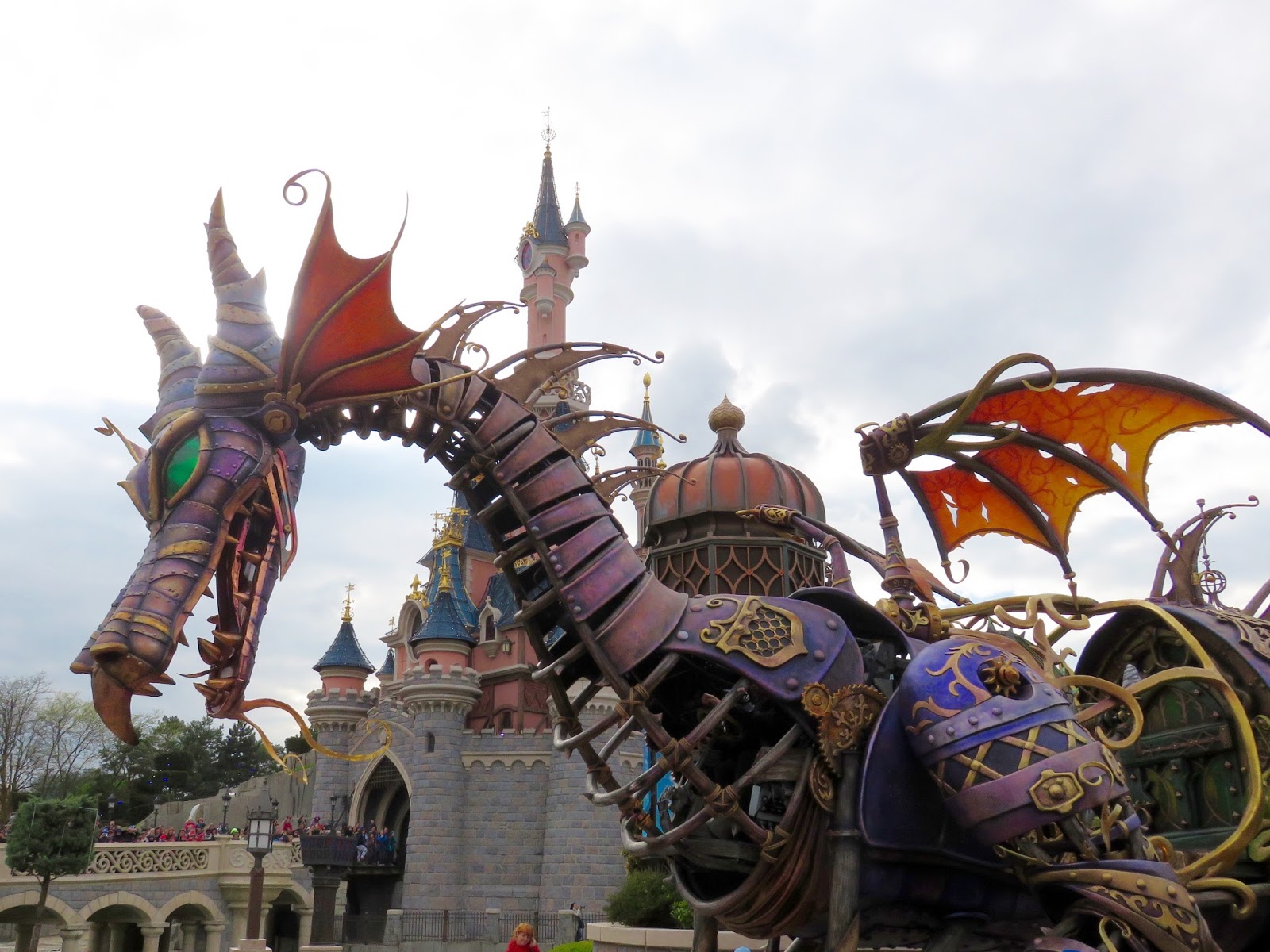 However, Disney Paris is suitable for disabled people in a lot of other ways. It excels when it comes to the 5.30pm parade “Disney Stars on Parade”. If you head to the same area that you see the shows in (directly in front of the castle on the right-hand side as you walk towards the castle from the entrance) then a Disney staff member will allow you plus however many carer companions your passport allows you into a special area. this worked really well for us as we got there early and parked my wheelchair by the rope with my sister behind me so we both had a brilliant view of the parade. The parade characters seemed to interact really well with the disabled area, especially the children! As with most Disney shows there was loud music, smoke and scary elements such as a large fire-breathing dragon.