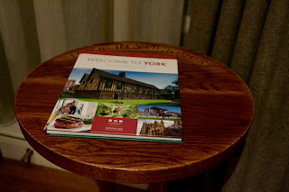 Aside from the decorative items in the room, there were also some great functional areas also. There was an iphone docking port in the alarm clock and a large TV screen mounted on the wall. I thought that there were some great thoughtful touches in the room also such as a small carton of fresh milk to use in tea and coffee in the small room fridge. The hot chocolate sachets, tea and coffee in the hot drink making area were also perfect for warming us up after our wintery walks around York! I am very much a sweet-tooth myself so I also appreciated the gourmet biscuits and chocolate that were provided in the room. The decorations were also highly personalised for the local area such as lampshades listing all of the historic businesses at each street number of the Walmgate road that the hotel is located on. A really innovative and unique idea!  We also loved the ‘Welcome to Hotel Indigo York’ message written on the mirror and the local York guidebook. There were more leaflets on display near to Reception and the front desk staff were really helpful so I’m sure they would be happy to tell you about local attractions and things  to do!