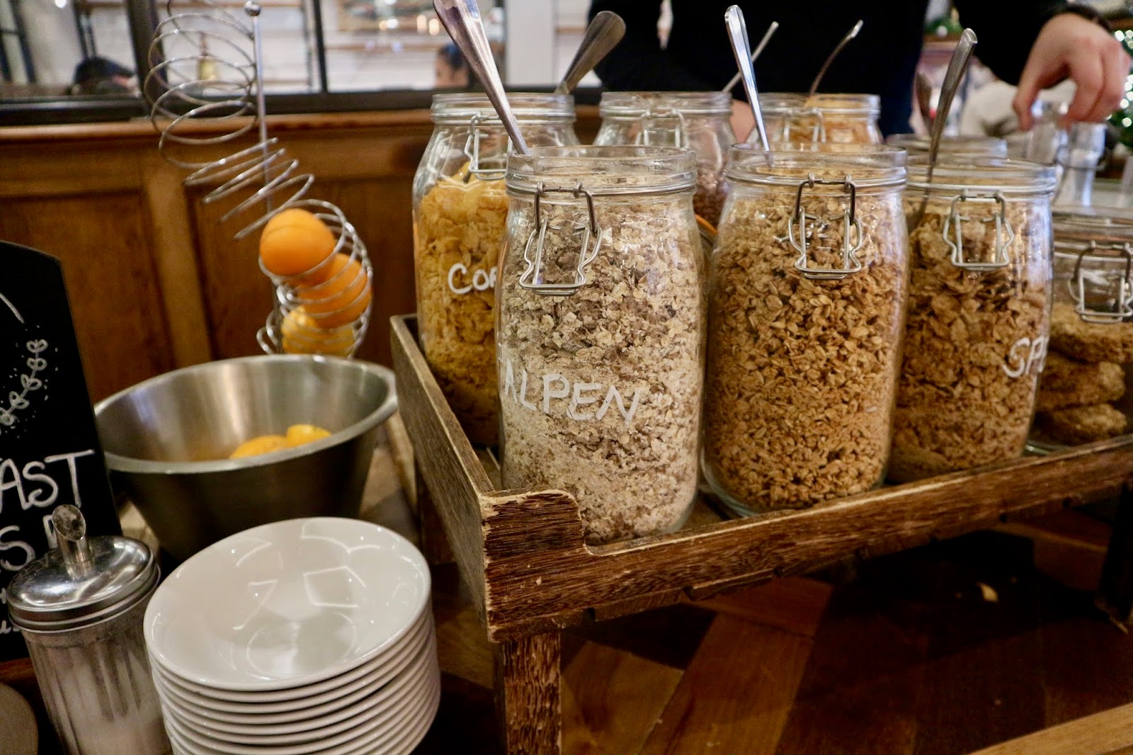 The continental buffet had such a huge variety of options to choose from; there were cheeses, cold meat cuts, pastries, muffins, fruits, yoghurts, nuts and cereals to choose from. There was also a section that were specifically gluten-free for guests with coeliacs or intolerances to gluten. The range of food was amazing; there would certainly be something be something for everyone to choose! I also liked the presentation on a long, central table with small chalk board signs showing clearly what each food item was! Alongside the continental food, you could help yourself to multiple fruit juices and even squeeze your own oranges! The waiting staff brought hot drinks like pots of tea and coffee to your table when you ordered your hot breakfast and they were always around if you wanted your hot drinks replenishing. I took so many photos of the lovely food on the central table that I struggled to choose which to share with you! Enjoy the culinary beauty of the continental breakfast selection!