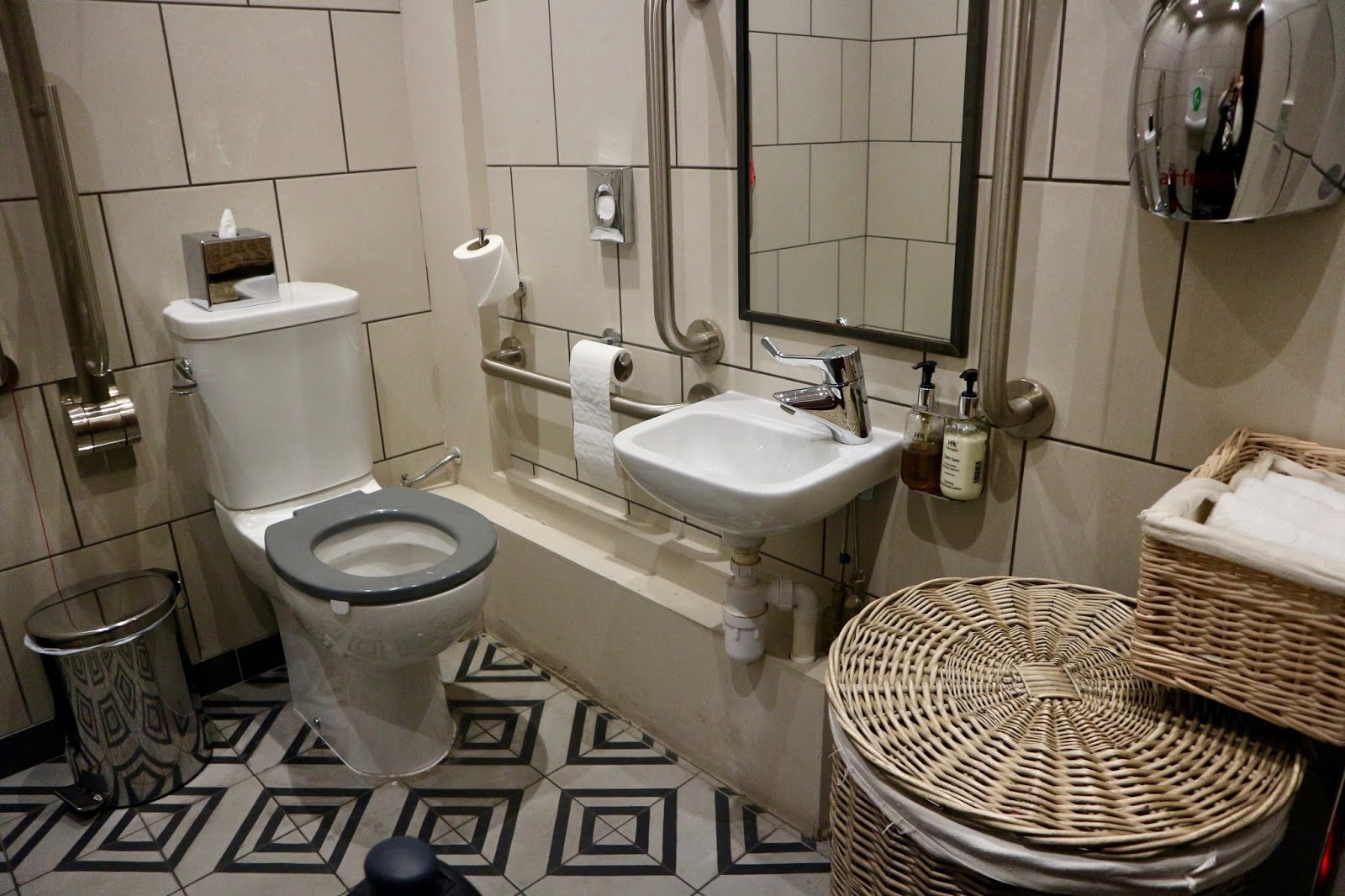 There was also a spacious disabled toilet within a short distance of the dining area. This was clearly signed on the door and didn’t need a RADAR key for you to enter. This was very clean and contained plentiful grab handles for help with transferring. The bins were within easy reach of the toilet and the tiled floor was very smooth for wheeling around on. I used my WHILL Model C during my York trip so I could easily spin around in this space as the turning circle for this wheelchair is handily really tight so I can spin around easily, however, you would have no problem turning and moving around in this large space even if you have a larger chair than my WHILL.