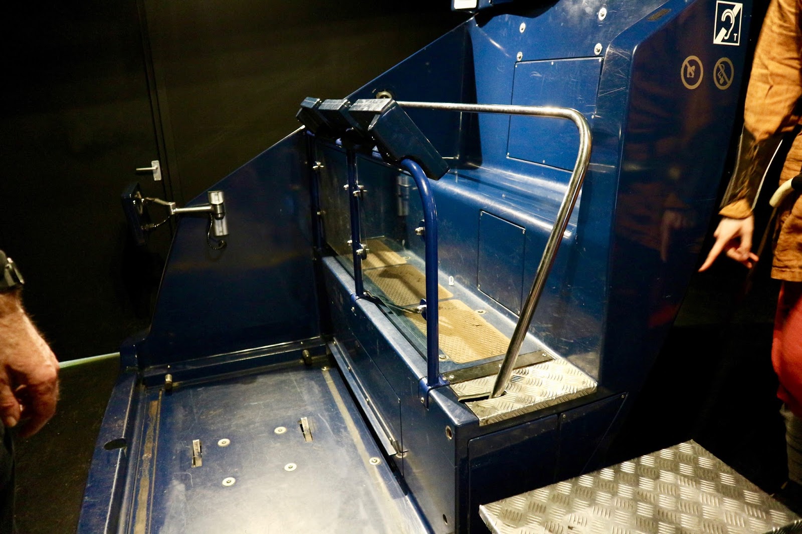 A staff member will help you on from this area if you have a physical disability that means loading on a ride will be difficult. Make sure to talk to the staff if you or your companion will struggle with queueing at all also as there is normally a short queue to board the immersive Viking ride. The usual carriage is pictured below which has one shallow step to board the front row or three slightly wider steps if you are to join on the back row. We used the mobility assistance carriage where I was wheeled onto a special movable platform in my wheelchair, applied my brakes and then the platform was wheeled onto the ride by a staff member. I would really advise you booking in advance or speaking to the JORVIK staff prior to visiting as only one wheelchair user is allowed in the building at a time so there could be high demand particularly in UK holiday periods. This boarding process went very smoothly and there were very few jolts for me (who suffers with severe nerve pain so struggles with abrupt movements). My two parents and my sister could board normally at the back of the ride and were in the same carriage as me. Once the platform was locked in I was given a pair of headphones since the built-in seat speakers by your ears were not present in the wheelchair carriage and my touch-screen information monitor was swung around so I could see it to my right hand side.
