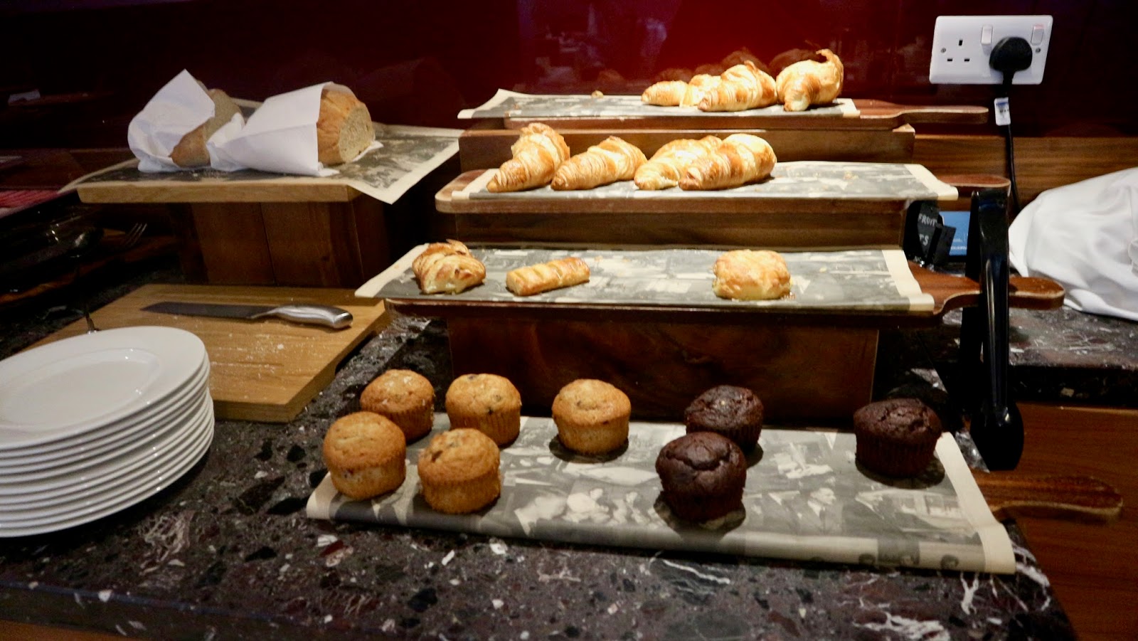 We were given lots of tea and coffee and there was a great choice of tea selection if you preferred Assam, Darjeeling, fruit tea etc. This was marked clearly on the menu which was nice. The Full English Breakfast was DELICIOUS! I really enjoyed the food and there were lots of tasty choices such as kippers, smoked haddock, omelette and smoked salmon. There was also a vegetarian breakfast option including vegetarian sausage alongside the usual Full English selection. Both Full English choices gave different egg options including scrambled, poached, boiled and fried egg which was great. Richard and I both really enjoyed the Full English and ate far too many pastries from the Continental Breakfast Buffet (pictured further below).