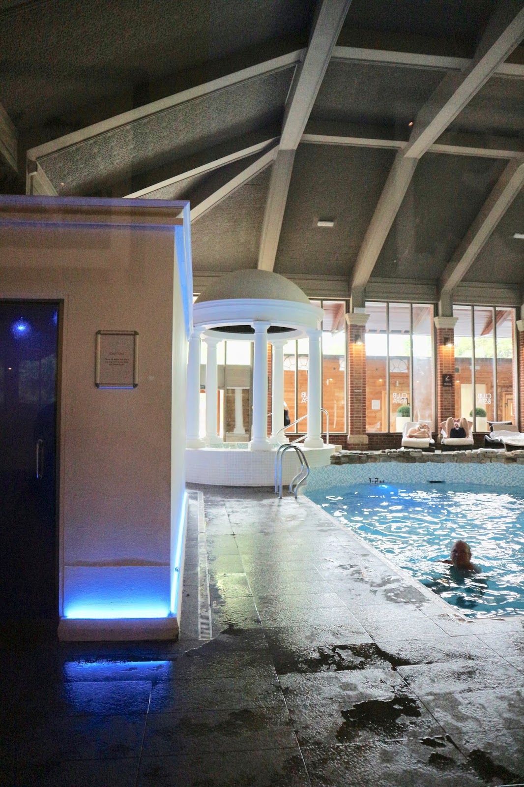 We decided we would also use the outdoors sauna rooms after our dip in the hot tub. These had lovely large windows that looked out on the hall’s grounds. I particularly loved the Mineral Stonebath room since there was a really unique contraption in the centre. This heated a metal basket filled with mineral salted stones and periodically submersed this into a vat of water. This created a humid room filled with moisture and relaxing salt vapours from the rocks. I thought this experience was really special and immersed Richard and I in relaxing steam. This room was really popular with many of the spa guests and the lower layer of wooden lats could have done with a clean. However, we were visiting at about 4pm on a weekday so perhaps it was just due to this room being really popular.