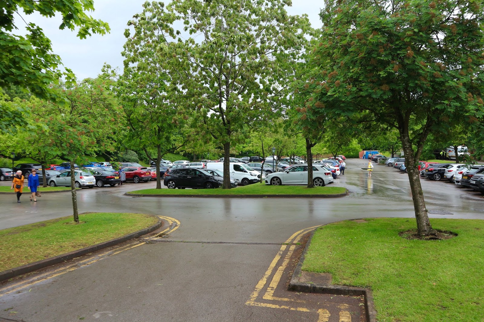 We continued around the left-hand side of the property to park our car. There were five blue badge parking spaces that gave us ample room to park up and unload my wheelchair. I used my WHILL model C during this visit so it was really quick and easy for Richard to assemble this in the car park so we could continue onwards. The yellow grid lines at the side of the spaces were perfectly wide enough for my compact WHILL to wheel around easily. There was a large car park just around the corner that you could use if the blue badge spaces were full or if you didn’t hold that badge.