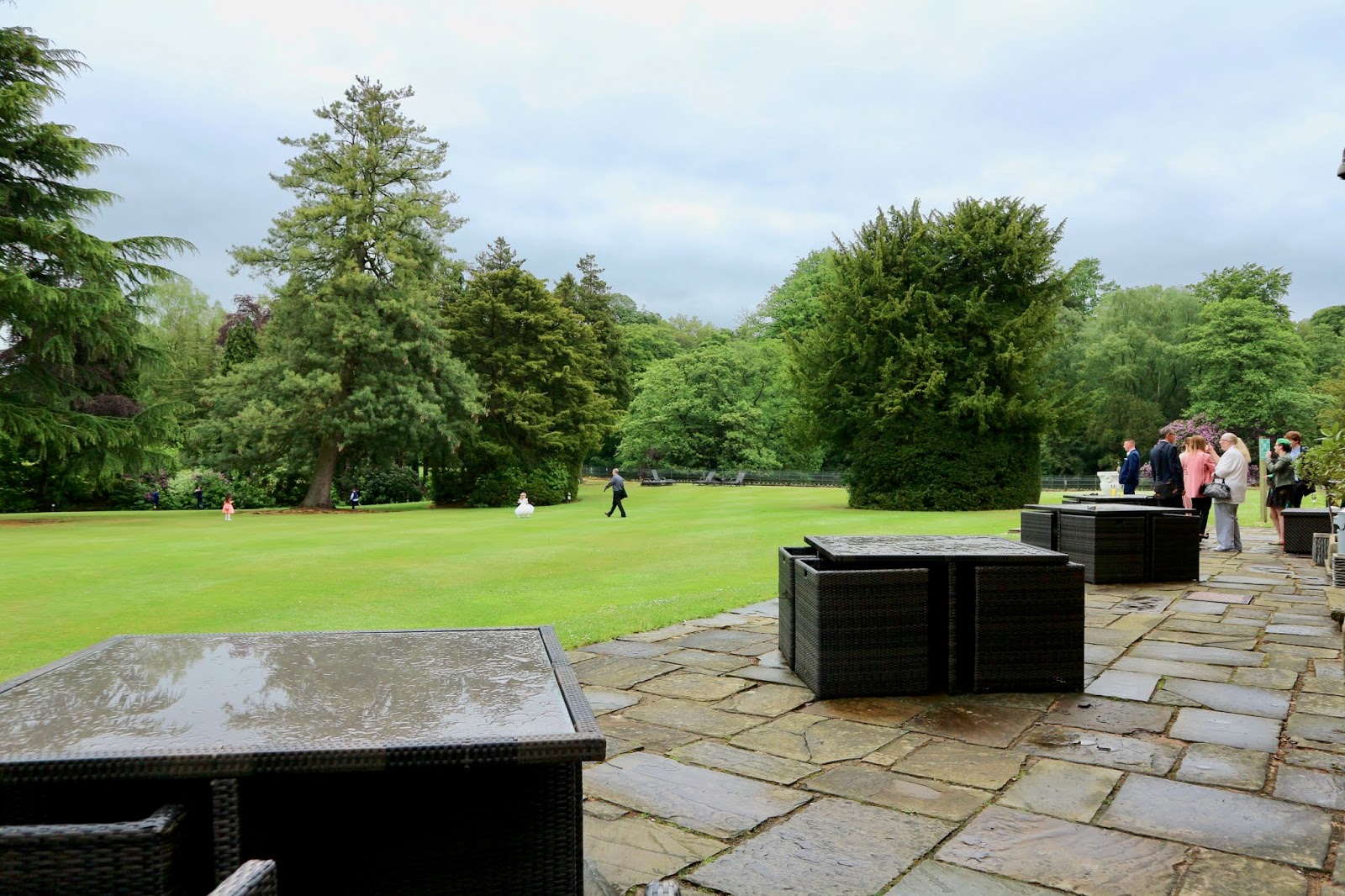 There was a large lake, cobbled pathways circling the hall and outdoor seating areas for when the weather was slightly warmer. We left the main building through a door next to the disabled toilet and this has a gentle ramp to lead us outside the property. I loved that the staff at the hall had thought about access to the grounds through other doors rather forcing Richard and I to wheel back around to the main entrance to go outside. The flower beds were in full bloom and gave a colourful backdrop to the well-manicured greenery.