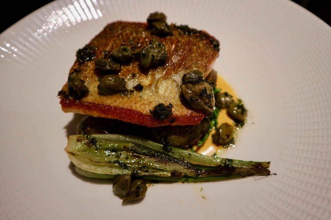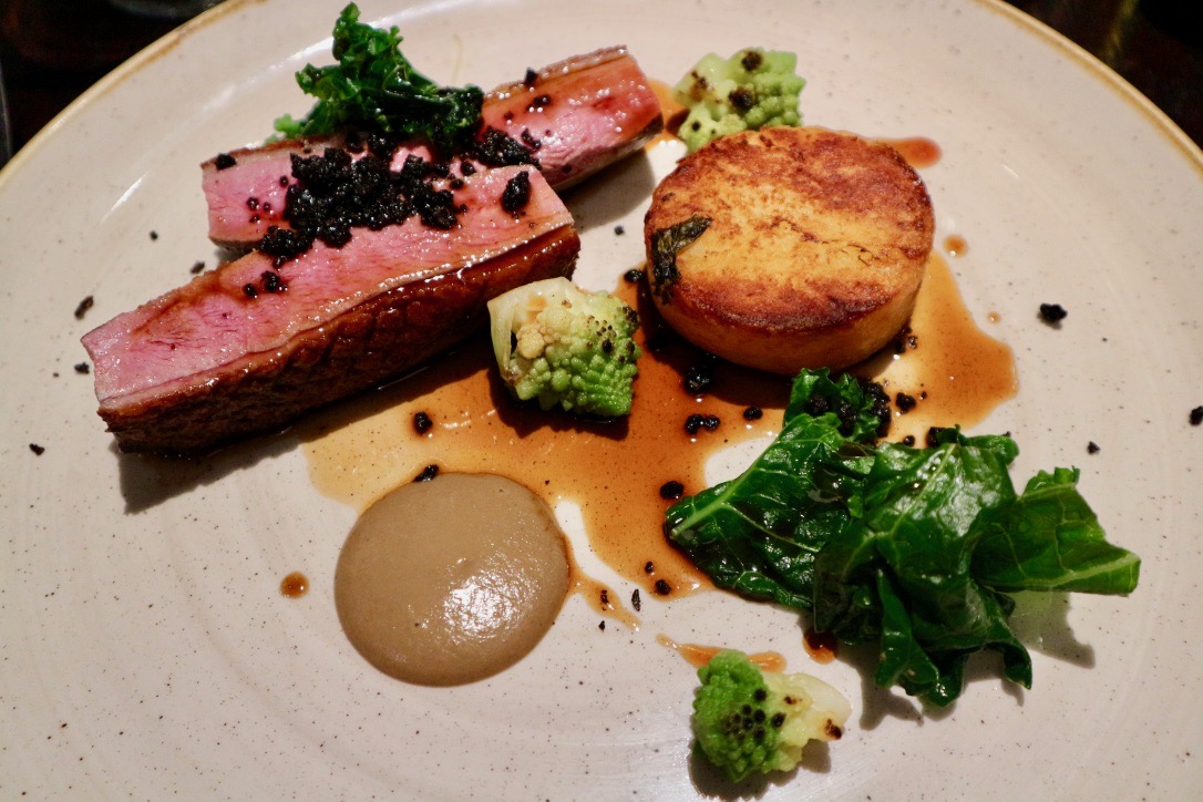 Richard ordered the Pan-fried Sea Trout which was accompanied by fennel, samphire, brown crap and caper butter. This again was very aesthetically pleasing on the plate. The pink sea trout had a mild flavour whilst having plenty of meat and a juicy, light texture. Richard thought that the capers and sauce really complimented this dish. The vegetable accompaniments were clearly very well thought out by the chefs and we could both definitely see why this restaurant was awarded the AA Rosettes!