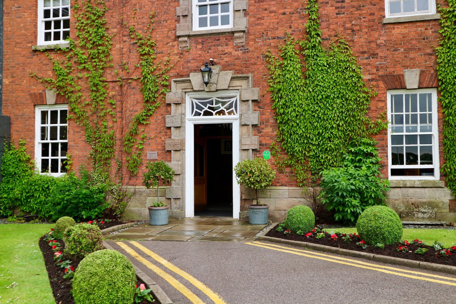 From the car park, it was a short wheel across to the entrance to Mottram Hall. This was picture-perfect with the climbing ivy framing the door. This was level-access and I had no problem getting my wheelchair through the threshold. The door was wide enough for most wheelchairs to enter.