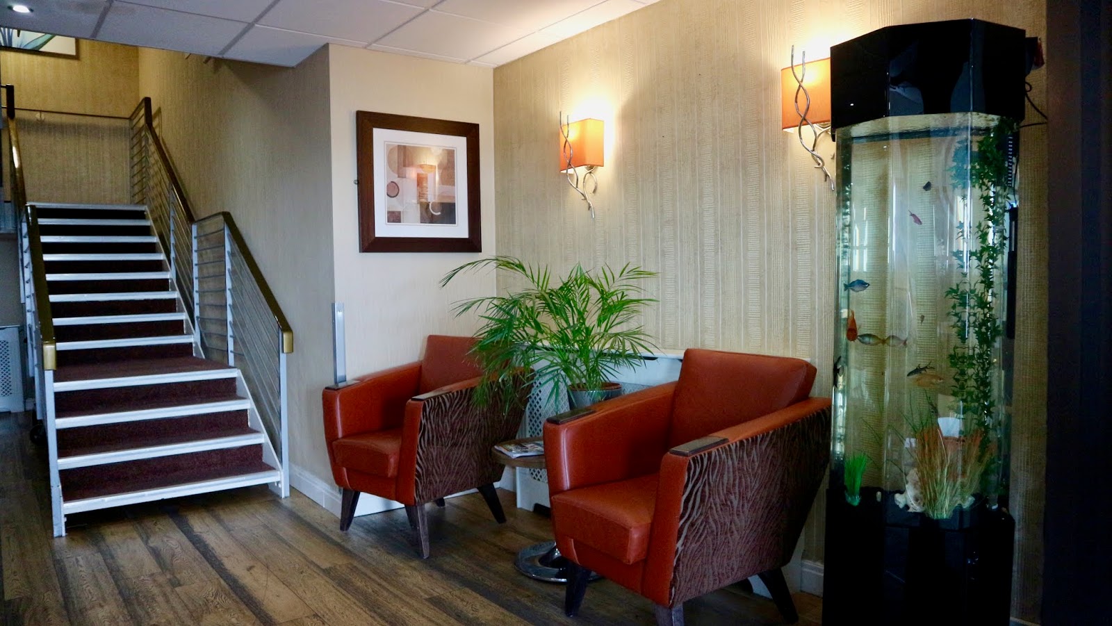 Richard and I were lucky enough to have a beautifully sunny weekend in Blackpool which we used to celebrate our anniversary of being a couple for six years! We found the town itself very accessible with many of the main attractions really thinking about accessibility and how they can help a disabled visitor. During our weekend we visited the top of Blackpool Tower (the Tower Eye), the Tower Ballroom, the beach and a few accessible bars and nightclubs. If you want more information on any of these things then do drop me a line on Instagram (@disabledtravelwithgeorgina) or email (disabledtravelwithgeorgina@gmail.com). The hotel we stayed in was the New Mayfair Hotel (http://safehandsholidays.co.uk/blackpool/) which is conveniently located at the South Promenade of Blackpool and within walkable/ ‘wheelable’ distance of the Pleasure Beach and the accessible tram system that runs all the way down the coast. The location was absolutely ideal as we found free parking close by or the hotel does have a small car park you can use if it isn’t full. Safehands are a holiday company that cater specifically in holidays for disabled guests. Therefore, the whole stay was highly accessible and there were lots of great “extras” that you could add to your stay if you had a more profound disability or illness than myself. These included hiring carers to visit your hotel room for personal care, using the hotel’s accessible minibus to book accessible day excursions around the surrounding area and use of hotel slings and hoists. The access in and around the hotel was top notch but we found that some of their facilities needed maintenance throughout the hotel and that the food wasn’t quite to our personal taste. I’ll go into more detail about these bits below. The hotel was approached by a slowly inclining ramp which was easy for Richard to push me up and at the top of the ramp there were automatic doors. The staff didn’t mention this to us upon check-in but they lock these at certain times at the evening so you have to use the doorbell to enter. We had been to meet friends at a bar so arrived when these were locked one evening but only had to wait five minutes for a staff member to open them. Around the entrance there were benches outside if you wanted air and guests used this as a smoking area. The Reception check-in desk included a lowered worktop area which was great so I could see the staff member when sat in my wheelchair. We were signed in very quickly but weren’t given any information on meal times or directions to our room until we asked. The staff member on duty came to our room after we had been there for about half an hour to give us details on Cabaret show and meal times in a printed leaflet; presumably he had forgotten to give us this at Reception when we arrived? This information was really helpful but didn’t include a few things like check out times although we found that information later in the hotel directory in the room (peculiarly this was written underneath the Central Heating heading!). Check out time was 10am and rooms were ready to check in and enter by 3pm. I loved the modern decor of the Reception area, the inclusion of leaflets from around the area and the fish tank which would perhaps make a great first impression on guests with sensory processing disorders!