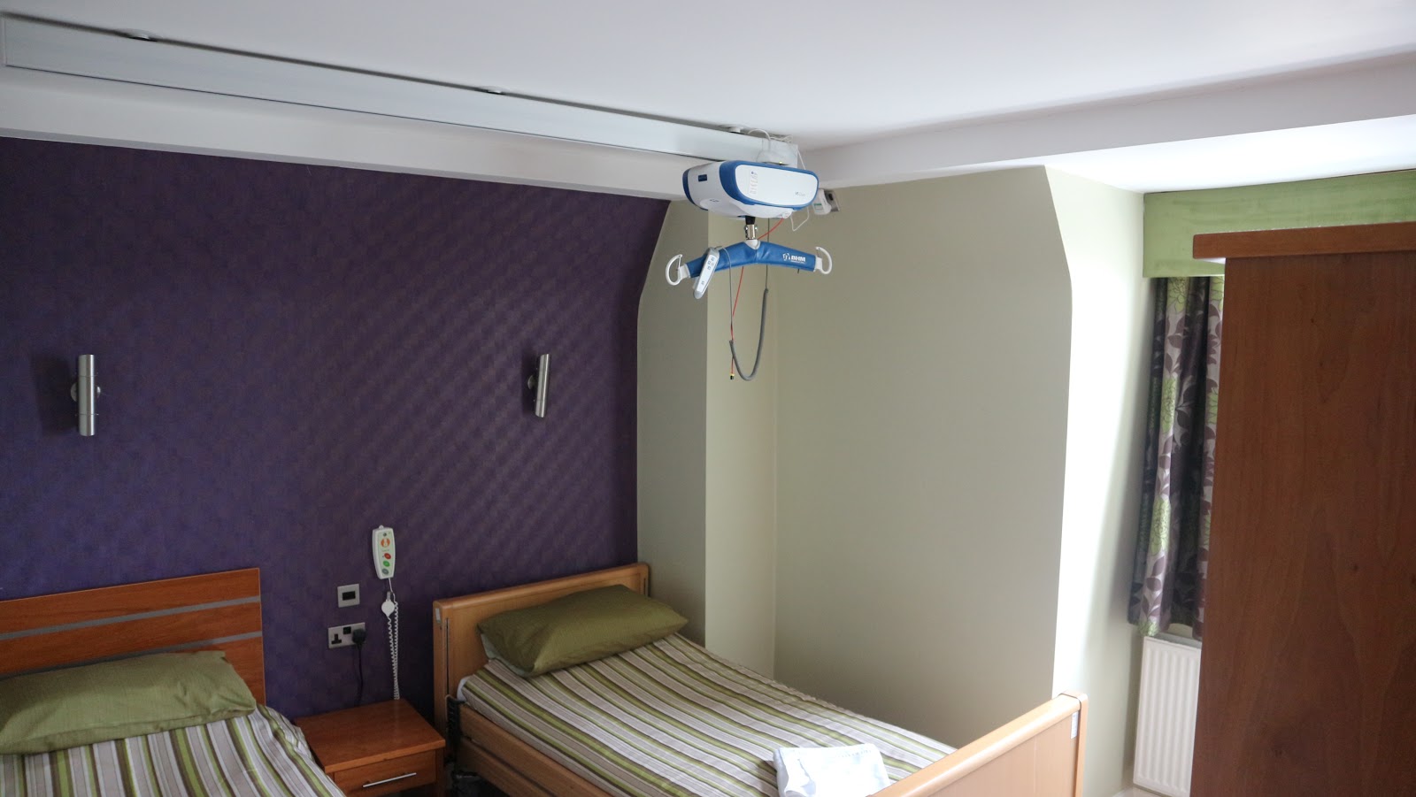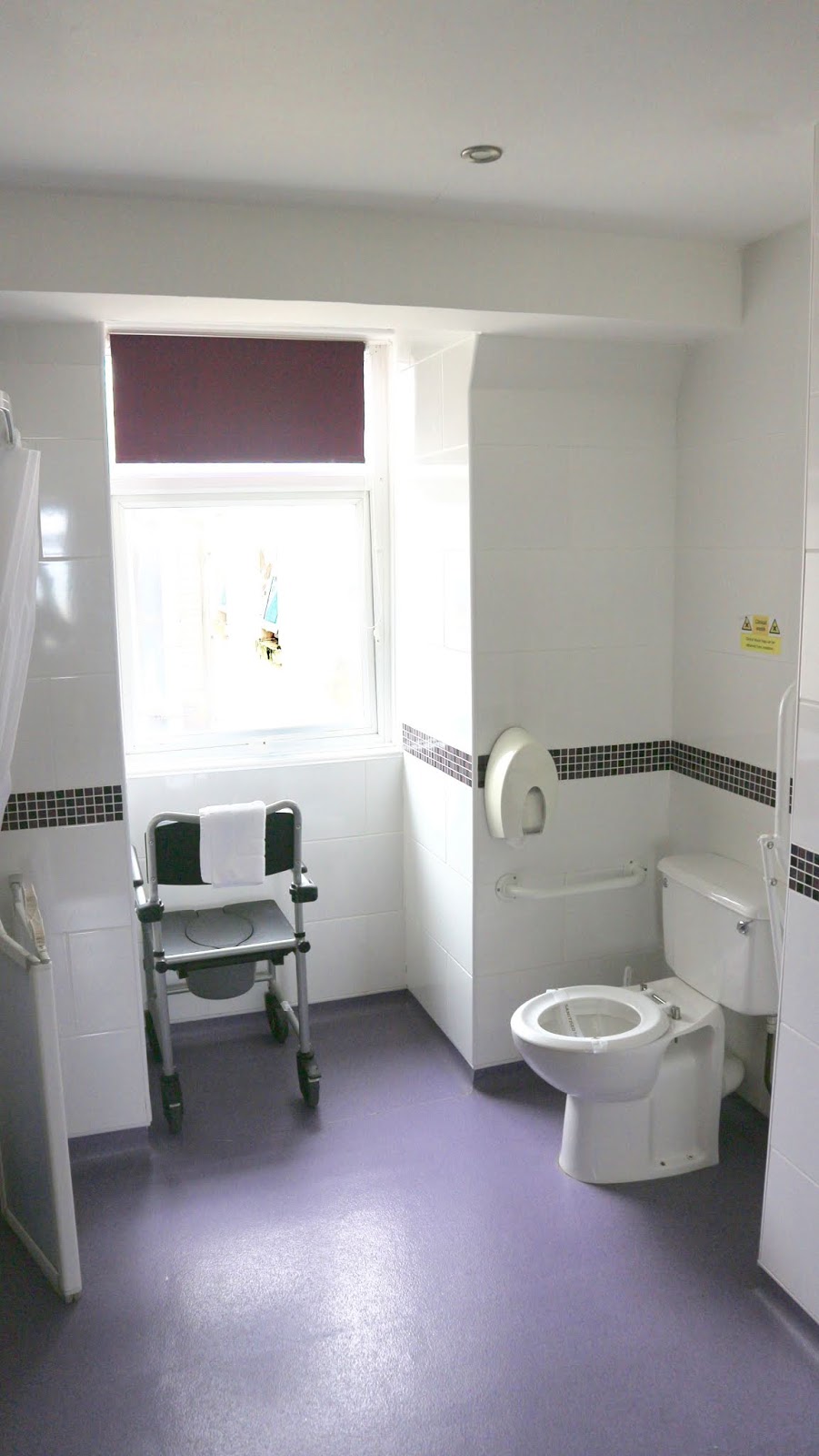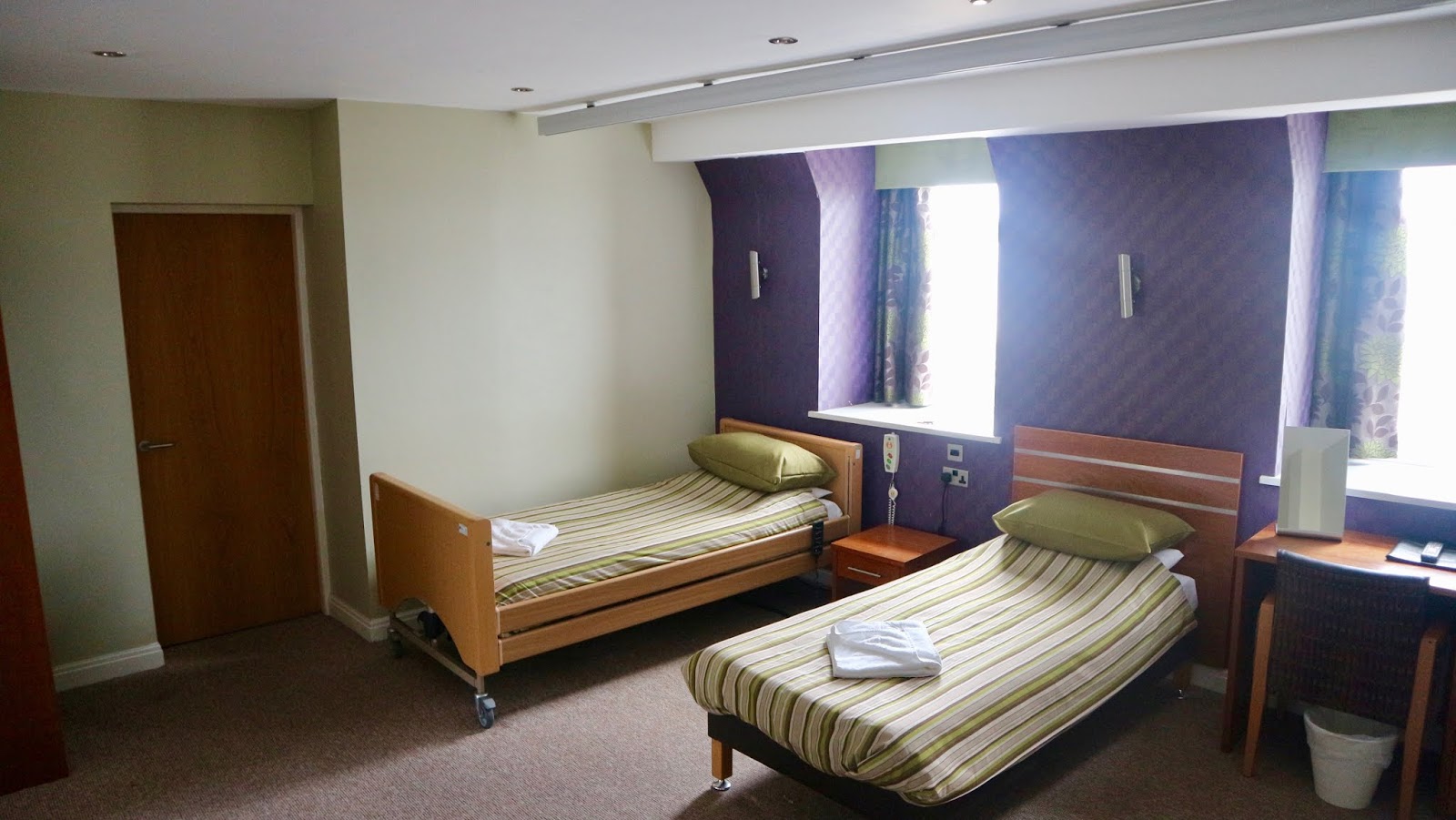 Our suite was really large and had a lovely sea view from each of the windows which was very nice in the sunny bank holiday weather! Our particular room (Suite 4) had one room with three single beds and an adjoining room with two single beds. There were two separate wet room shower and toilet areas in the suite so it would be a perfect area for a family travelling together or a group of adults requiring overnight carers to sleep in a neighbouring room! There was plenty of space and a hoist was available to access every single one of the beds if required. You can bring your own sling or hire one in advance from Reception. Some of the beds were care beds/ nursing beds which meant they had a remote control attachment so you could raise the bed back into a seated position, raise a triangle section in the centre of the bed so the guest’s knees were raised and bent or flatten the entire bed quickly in an emergency situation. This is a great feature if a guest needs changing by carers or needs pressure areas altering at regular intervals to prevent bed sores. The beds were comfy and I could access every side of them when using my wheelchair.