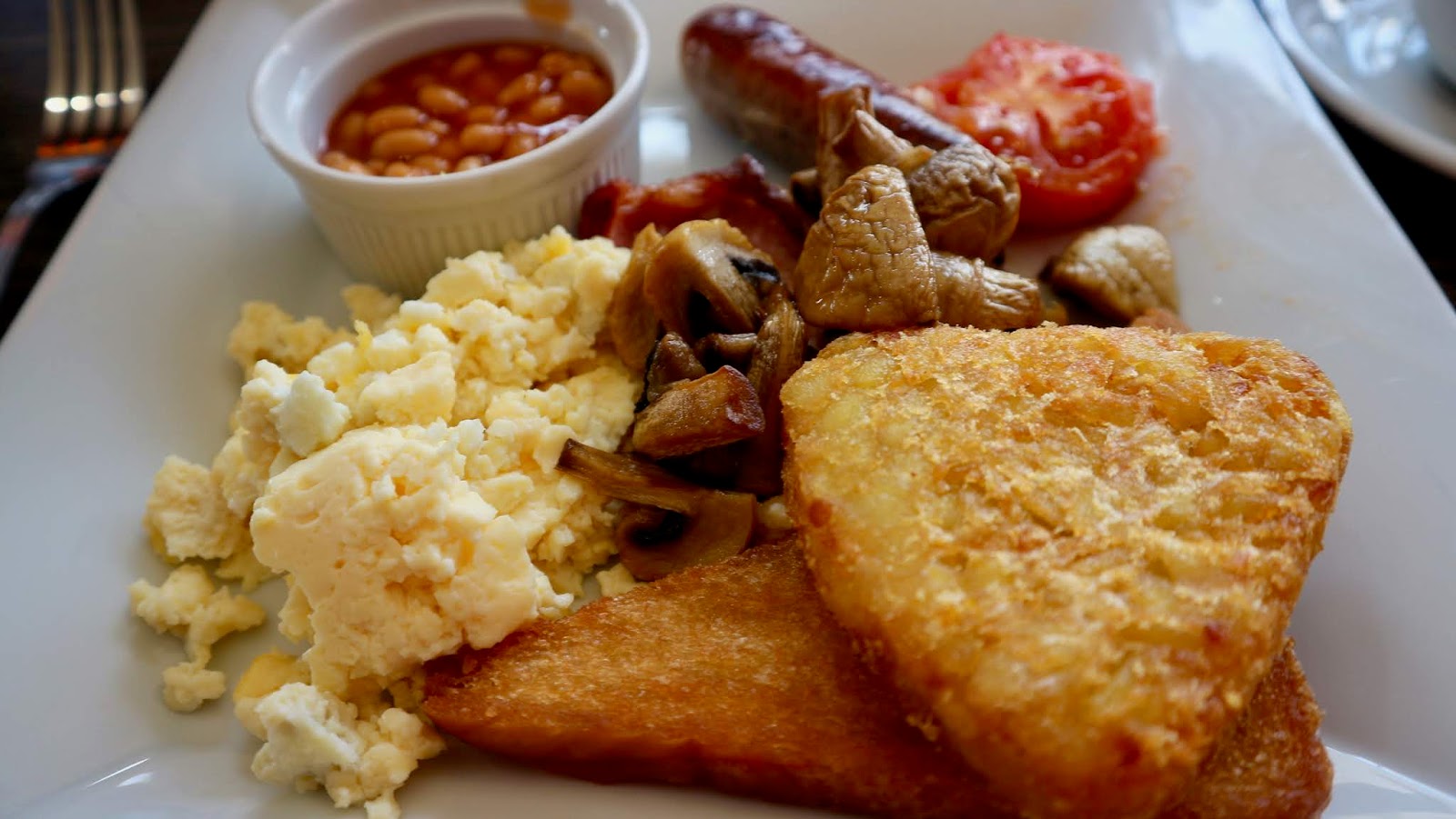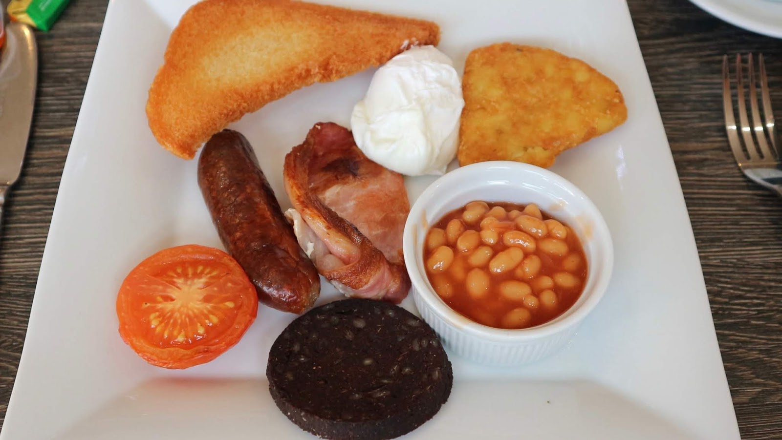 There was a Cabaret act on in the evening that many of the guests really enjoyed since the songs were very uplifting! They were followed by Bingo and a Raffle. Richard and I popped out to visit friends at a bar after our meal and had a lovely night of sleep in the comfy beds. Breakfast was served from 8.30-9.30am in the same restaurant as evening dinner. There was unlimited tea and coffee and there was table service which is so much better than wheelchair users struggling to carry a self-service plate across a dining area! There were cereals, fruit juices, grapefruit/prunes and yoghurts available to begin with. After that you could order an English Breakfast with sausage, bacon, tomato, baked beans, fried bread and your choice of eggs (scrambled, poached, fried). Additionally you could add hash browns, black pudding and mushrooms to your breakfast. Alternatively there were also lighter options of eggs, kippers or beans on toast or smoked haddock with a poached egg which gave lots of choice! The Full English portion wasn’t overwhelming so we had room for lunch later and the food arrived very promptly and was warm. It was also served with toast.